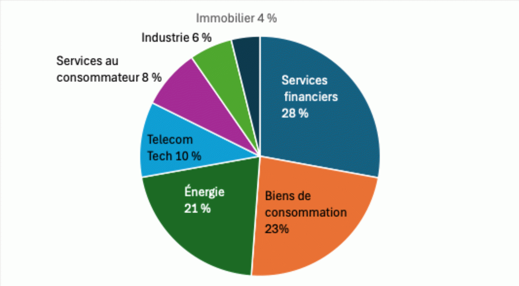 Au 31 décembre 2024, les Bourses espagnoles (Madrid, Barcelone, Valence et Bilbao) regroupaient 277 groupes cotés capitalisant 787 Md€, ainsi réparties sectoriellement :