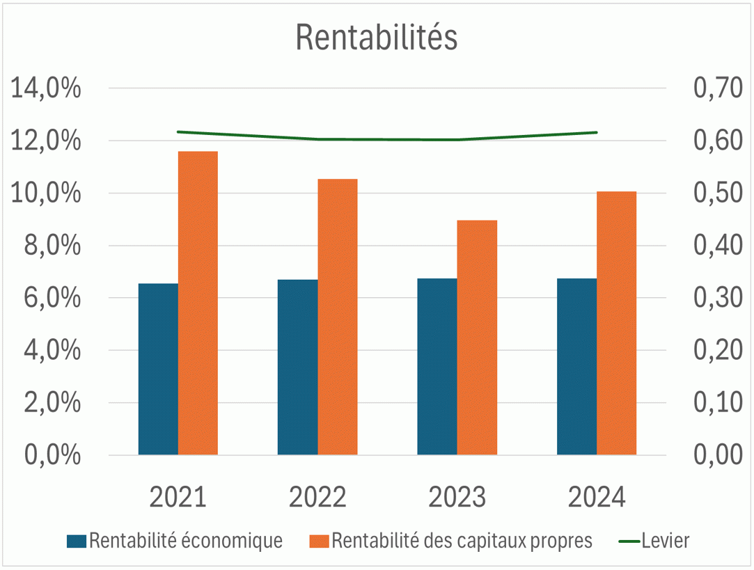 La rentabilité économique après impôt est à un niveau médiocre et stable de 2020 à 2024 à environ 6,5 %, alors que le coût du capital des grands groupes européens cotés est de l’ordre de 8 %.