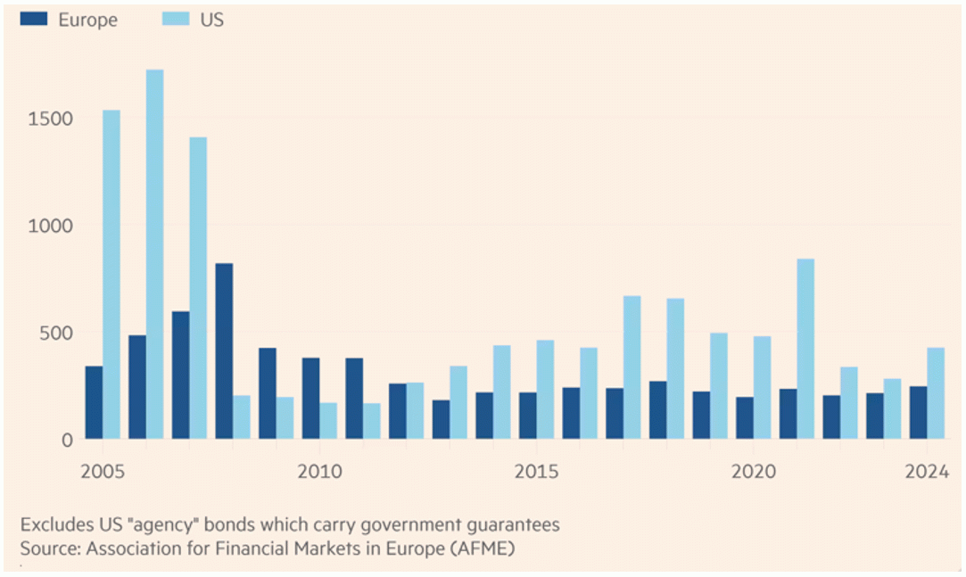 Tableau : Les titrisations des deux côtés de l'Atlantique